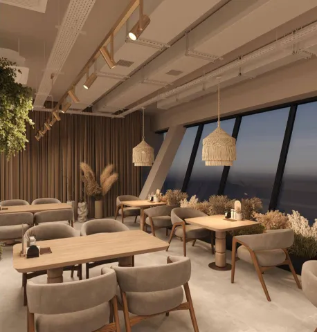 Демократичный ресторан с панорамным видом из окна