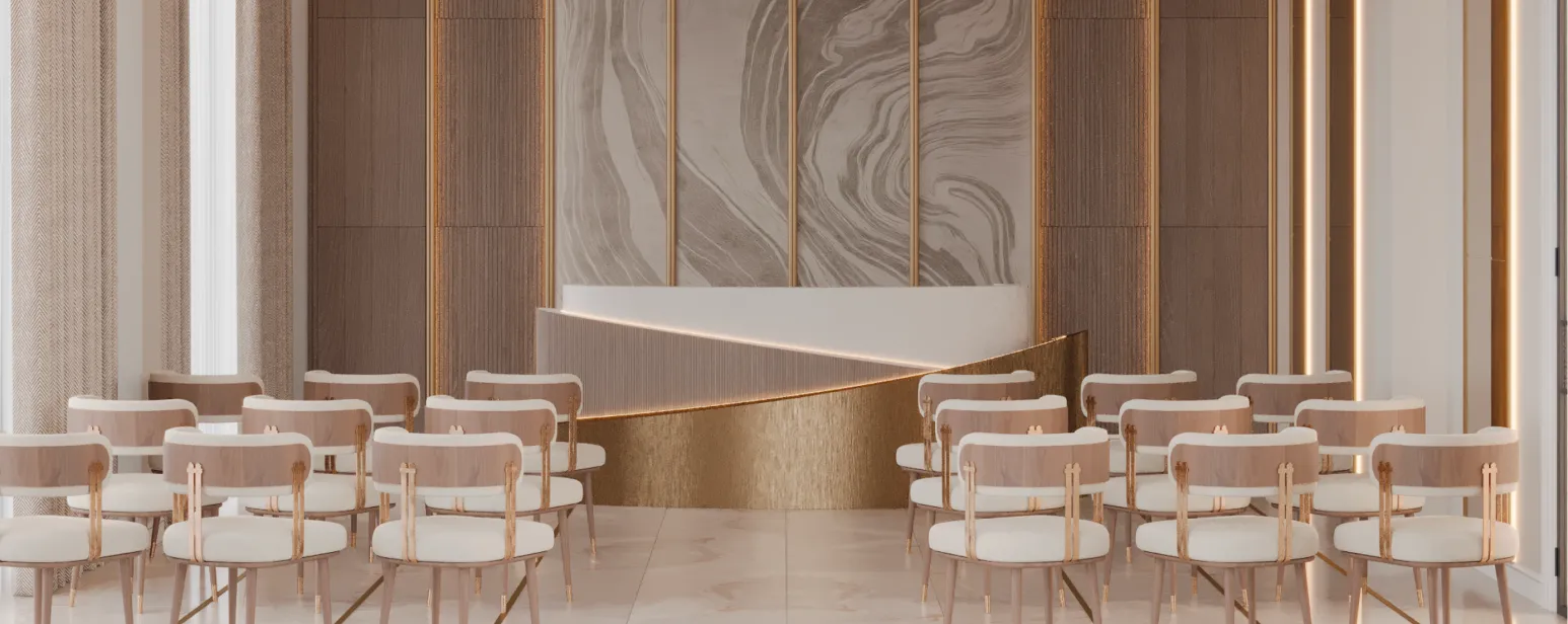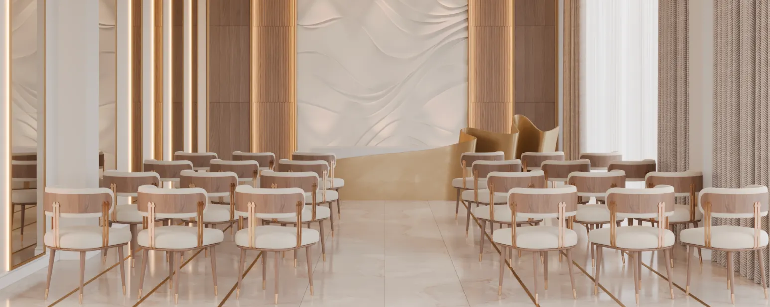 Эксклюзивный дизайн: лаконичная элегантность интерьеров в стиле современной классики — фон, который подчеркнёт стиль вашего праздника.