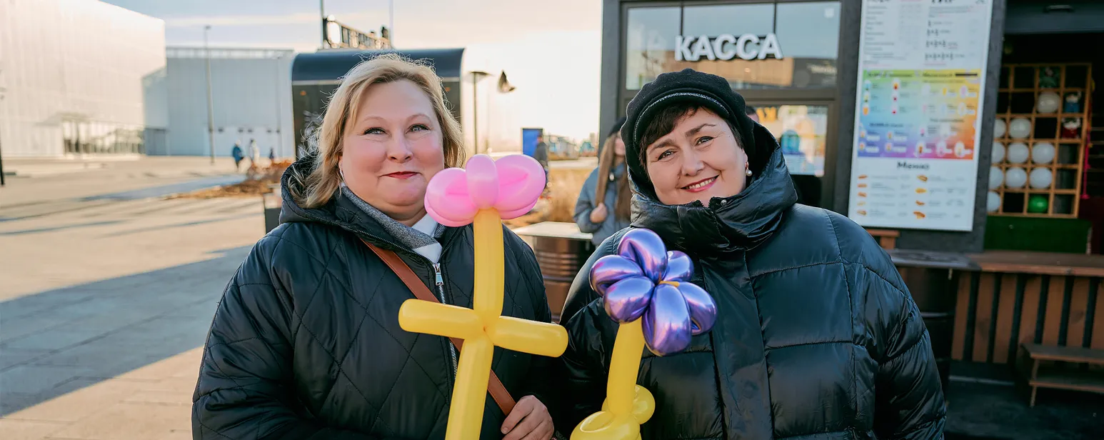 - оригинальные цветочные композиции из воздушных шариков, которые стали ярким украшением мероприятия и порадовали гостей всех возрастов. А дарили их на нашем катке и вблизи него. А эмоции мам и бабушек запечатлел профессиональный фотограф.