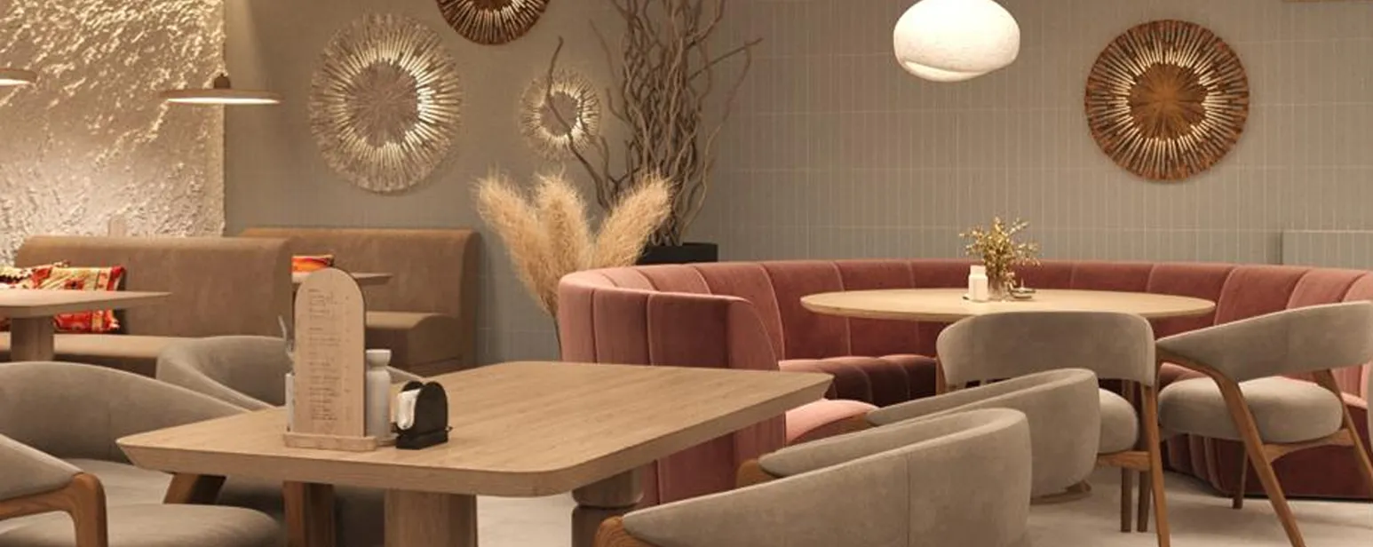 Дизайнерский интерьер украшен камнем и деревом, восточными узорами и интересными характерными фактурами. Спокойные нейтральные тона декора оттеняет яркая кухня и вкус настоящих восточных блюд. Шашлыки, люля-кебабы, самсы, пловы: свежайшие продукты, профессиональный штат кухни и лучшие рецепты мира!По вечерам – атмосферная музыка и живые выступления.